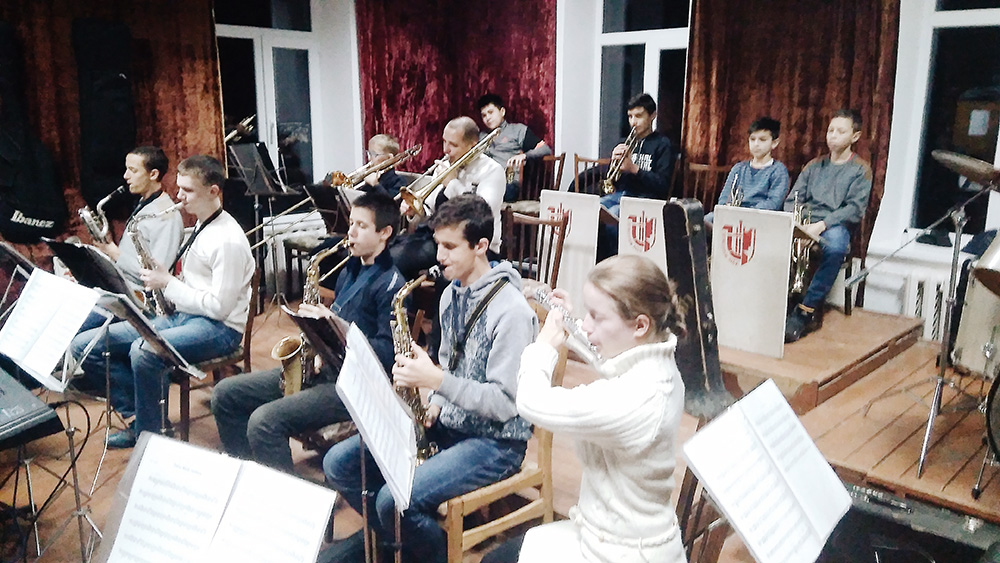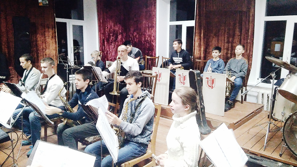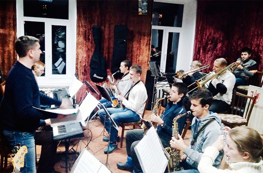 Народний аматорський естрадний оркестр на репетиції. Керівник оркестру: Олександр Ярмошенко.